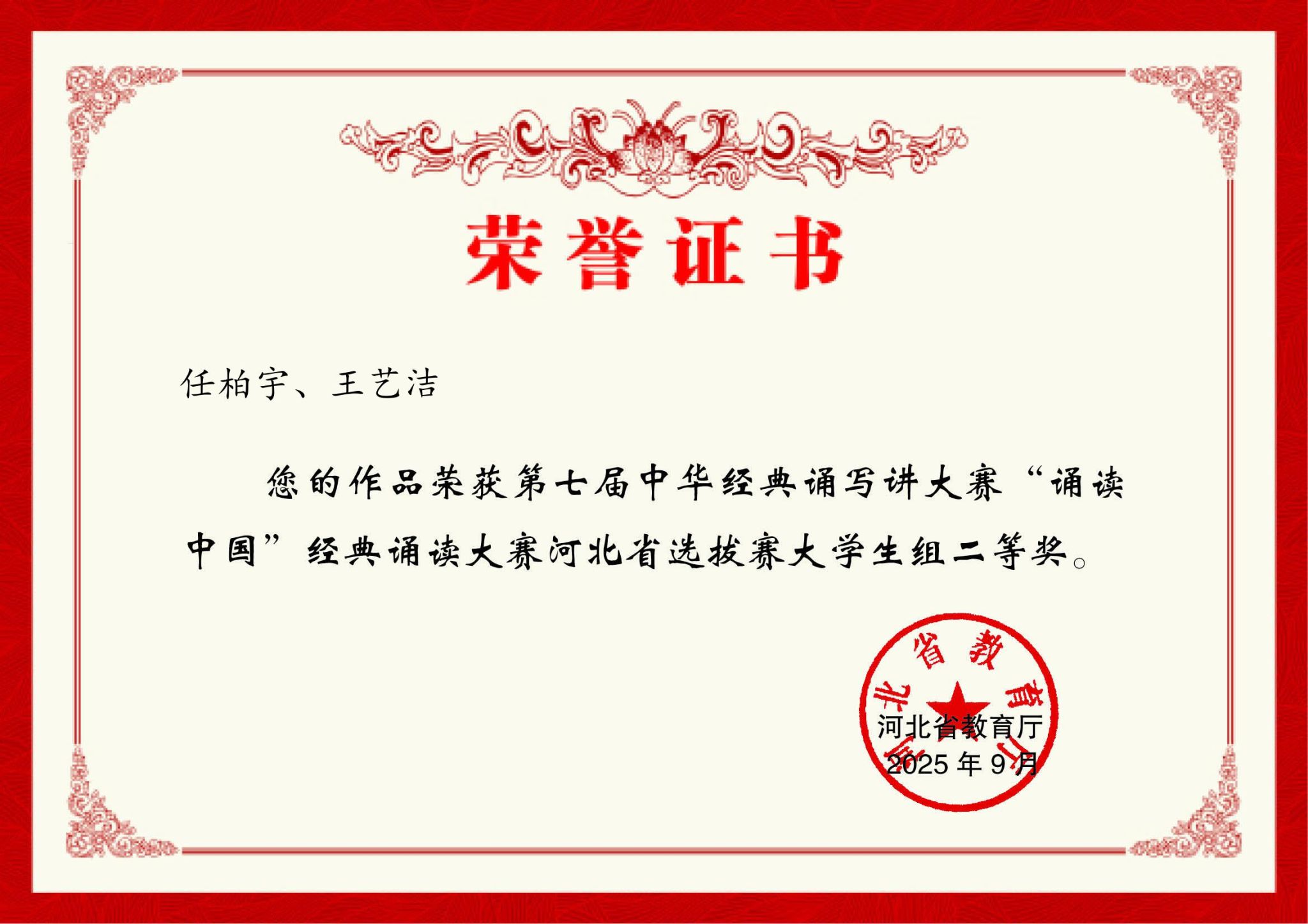 近日,第七届中华经典诵写讲大赛获奖名单公布,我校学生在比赛中表现优异。2024级装备1班任柏宇、20...