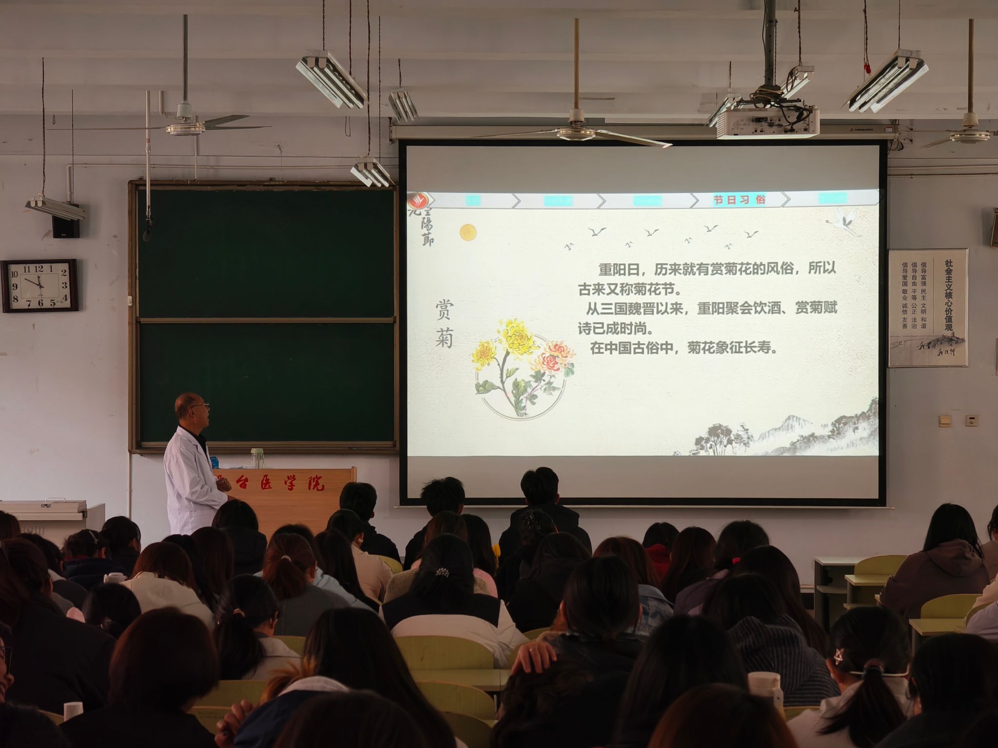 岁岁重阳,今又重阳。为弘扬中华优秀传统文化,增进学生对传统节日的了解,2025年10月28日下午,由语文教研室苏佩军老师主讲的“情暖重阳 薪火相传”主题讲座在温馨融洽的氛围中顺利举行。学校200余名新生齐聚一堂,共同聆听这场意蕴深厚的文化讲座,感受重阳节所承载的文化温度与精神传承。