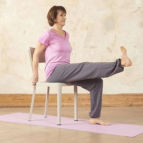 4. 坐姿抬腿:小腿抬平,停留3秒